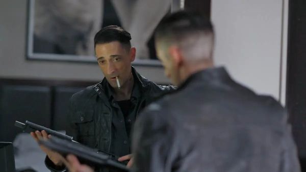 何とエイドリアン・ブロディが撃たれます。ボスは不敵に笑いますが、そのボスに息子は残りの全弾をぶち込みます。さらにエイドリアン・ブロディを再び撃とうとしますが、弾切れ。